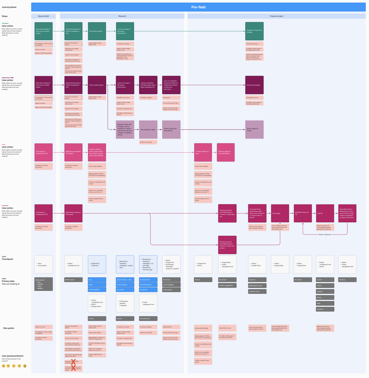 User journeys are essential to my workflow as a UX designer, offering a detailed view of the product from the user’s perspective. By mapping each step users take to achieve their goals, I can identify digital touchpoints, uncover pain points, and find opportunities to improve the experience. This ensures the design aligns with user behaviors and creates a seamless, intuitive flow.